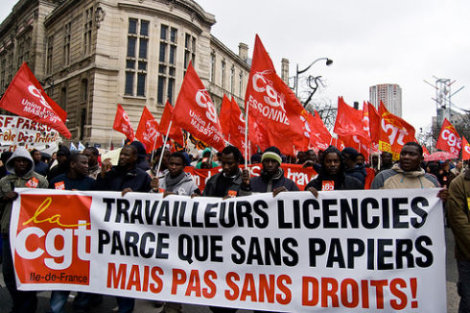 > Francia: il servizio d’ordine del sindacato spranga i sans papiers > 20080506CGTSansPap1
