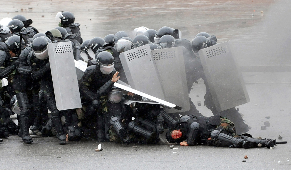 Hamza Basyuni, direttore del carcere, giunge adesso, giunge al momento opportuno. Dall’esterno arrivano urla mentre lui all’interno grida: