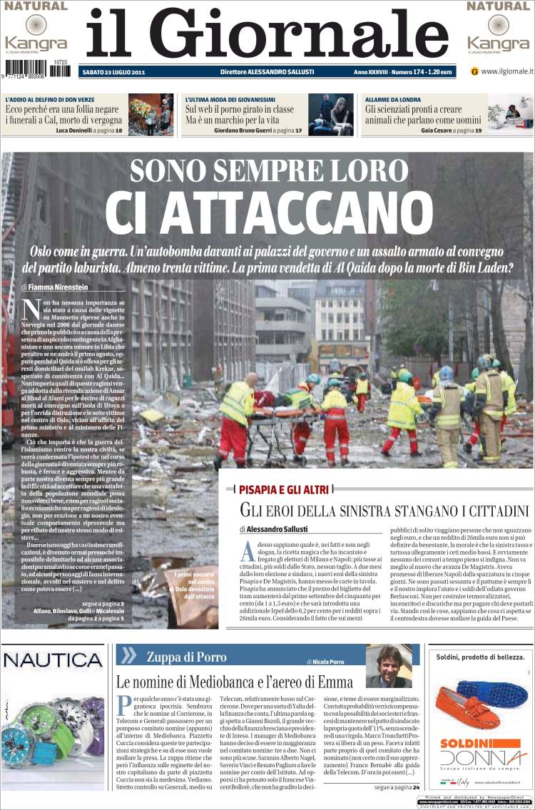 Ora che abbiamo 91 morti già accertati rimasti uccisi in un duplice attentato ad Oslo, la città dei premi Nobel, la città delle aringhe, dell’ordine e dei diritti…ora che ci sono cadaveri di giovanissimi ancora caldi al suolo, ammazzati dal piombo di un biondo, nazista, fondamentalista cattolico…