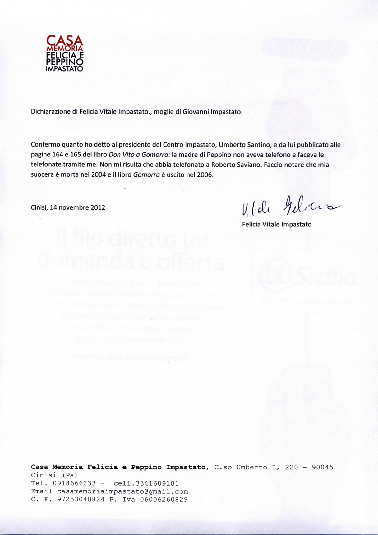 Per approfondire riguardo la querelle tra il Centro Impastato e Saviano,