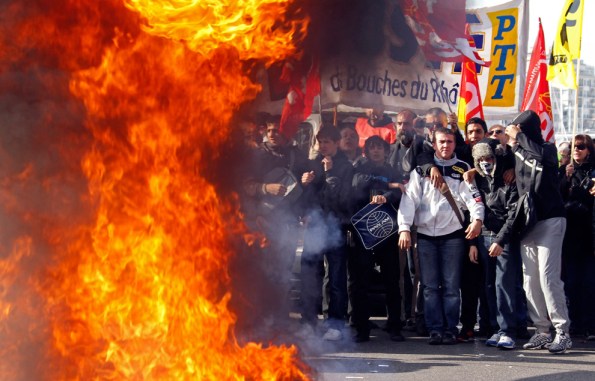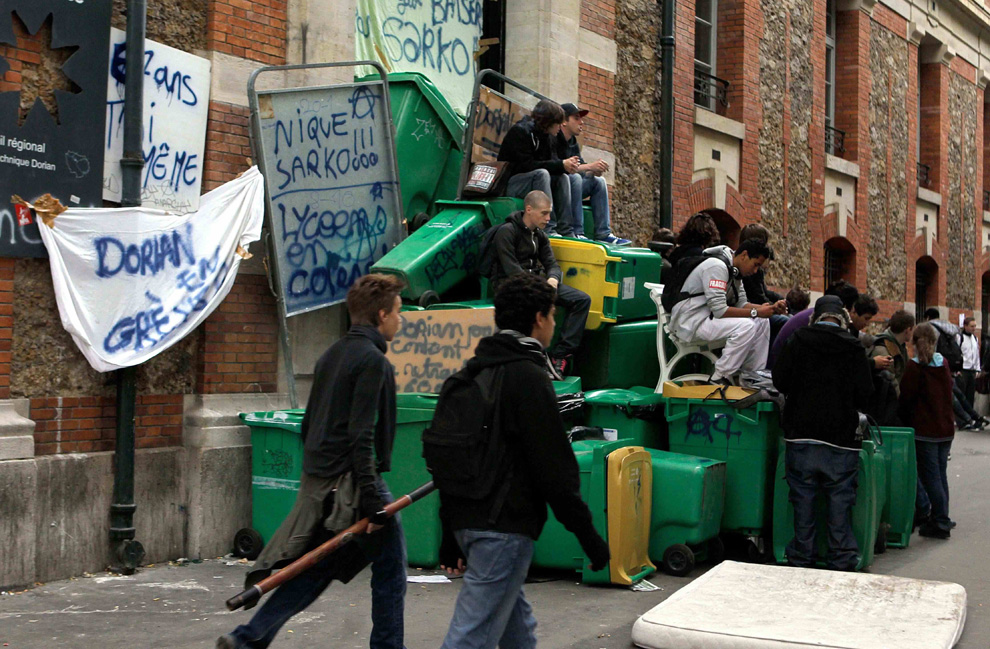 I Thibaud (il segretario generale della Cgt) non sono, in sé, migliori o peggiori dei Maroni o Hortefeux (il suo omologo di Francia) – questa problematica comparatista su migliori, peggiori, men-peggiori ci sembra insensata. Sono – e chi non lo aveva rivelato interamente prima, in questo passaggio e momento della verità lo mostra inequivocabilmente – dei veri e propri nemici. Ma rispetto ad autorappresentazioni e proiezioni d’attesa e fiducia che essi irradiano, a partire dall’onomastica, i Thibaud rappresentano la componente dell’infamia. Non perché realmente «tradiscano» qualcosa (che, per come si ponevano ed erano, son sempre stati, c’era poco o niente da tradire…), ma perché la lunga persistenza del peso delle parole, quel dirsi comunisti, li ha legati per ragioni di catene genealogiche di cui resta comunque una conseguenza onomastica pregna di mistificazione ed equivoco, una conseguenza di omonimia. Se si farà un corteo sotto la sede della Cgt, non sarà questione di psicodrammi e di “lacrime e parole amare”, ma il dirigere la lotta, di volta in volta, là dove risiede il potere costituito responsabile di un atto d’ostilità, di vera e propria guerra sociale. Una nota – non già di speranza, ma di scommessa: dopo più di ventiquattrore, sono ancora tutti e tutte lì, su quel marciapiede, e a rischio di una retata che li porti in un centro di detenzione e di smistamento per la deportazione. La vita nuda mostra così la sua irriducibile potenza, la sua disperata vitalità, potenza di persistere nel proprio essere