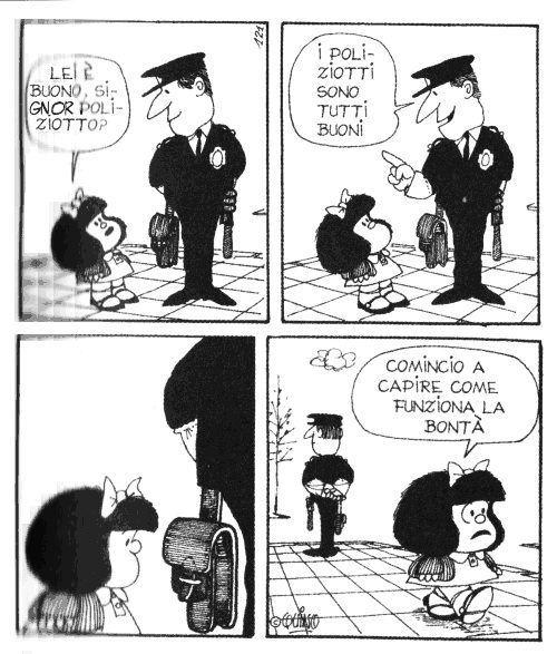 I vertici della polizia sono stati assolti: assolti si. Ormai è legge: se distruggi una vetrina ti prendi otto anni, se torturi, massacri, umili e ancora torturi vieni assolto se sei uno importante e se sei uno stronzo qualunque ti becchi un paio d’anni.