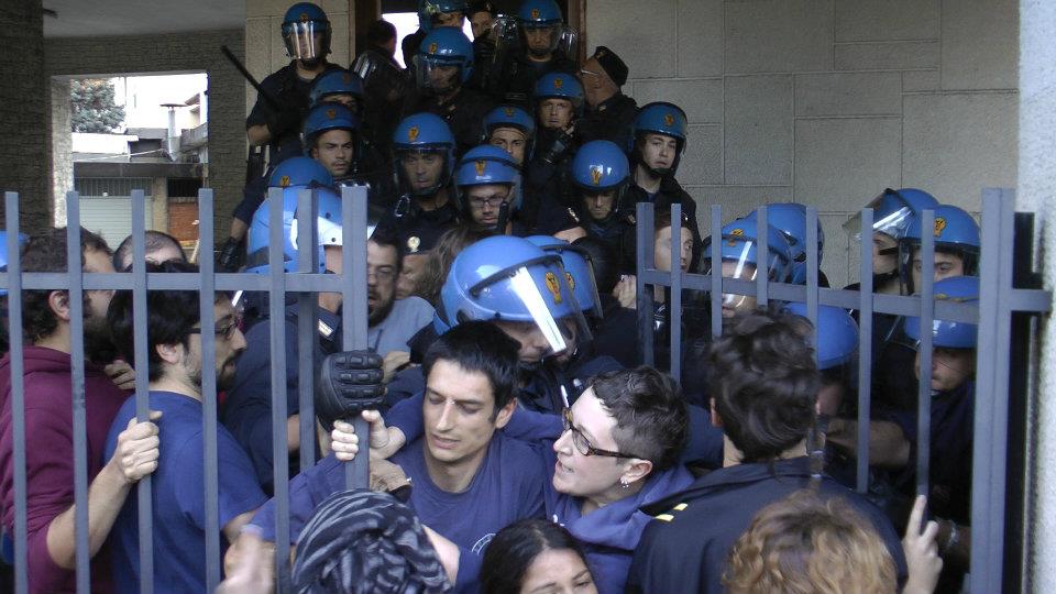 Numerose le cariche della celere sulle centinaia di studentesse e studenti che a Palazzo Nuovo protestavano contro la presenza dei fascisti. Cariche che si sono tramutate in vera e propria caccia alle persone, fin dentro le aule universitarie. Diversi i feriti, due sono in ospedale per le gravi ferite riportate.