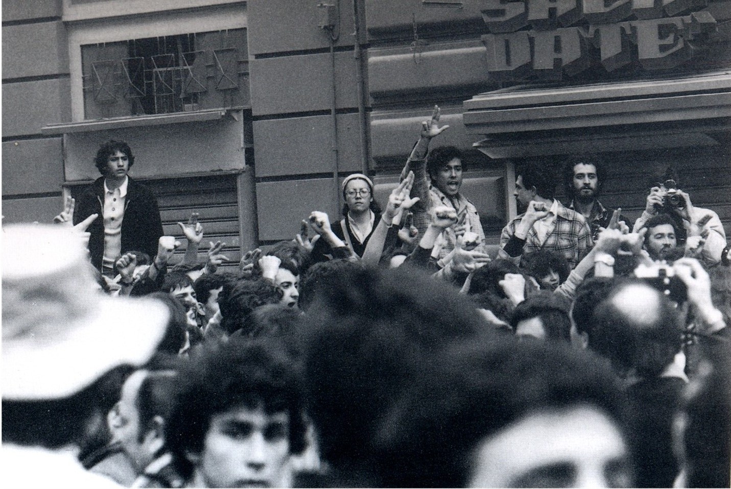 Maggio 1977 _Valerio in piazza, che guarda dall'alto la manifestazione_ Questa splendida foto è sul blog di Carla http://www.valerioverbano.it