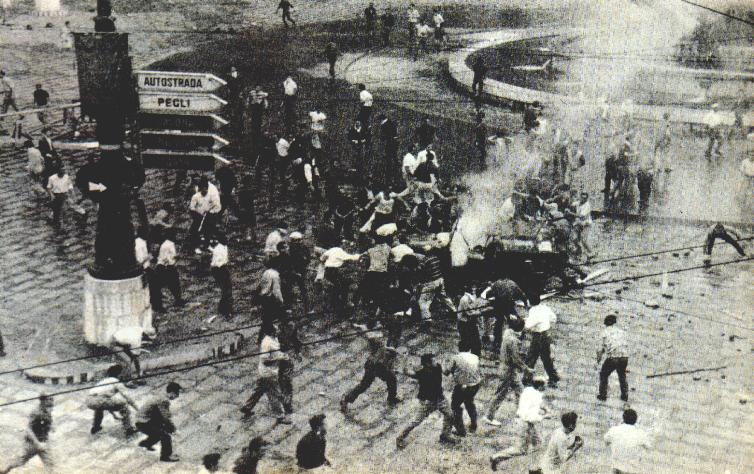 Il giorno prima a Roma un corteo fu caricato pesantemente e rispose con coraggio alle cariche a cavallo.