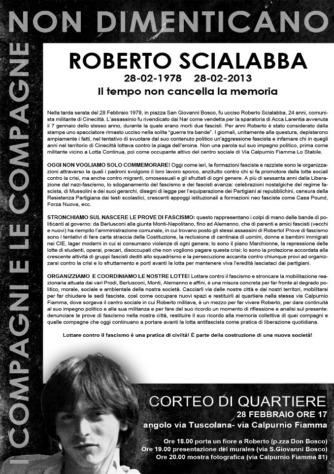 Quest’anno il sindaco Alemanno manterrà la promessa data lo scorso anno ai suoi camerati: inaugurando la “Piazza ai caduti di Acca Larenzia”.