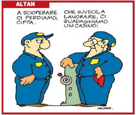 Io sciopero; sciopero perché manco più il premio di produzione ci danno ( e so’ quei 1000 euri più l’anno che contavano non poco per il mio budget familiare); sciopero perchè non potrei fare altrimenti, e vorrei solo aver conferma che quel merdoso posto di lavoro dove passo 36 ore a settimana sia fermo, vuoto, silenzioso.
