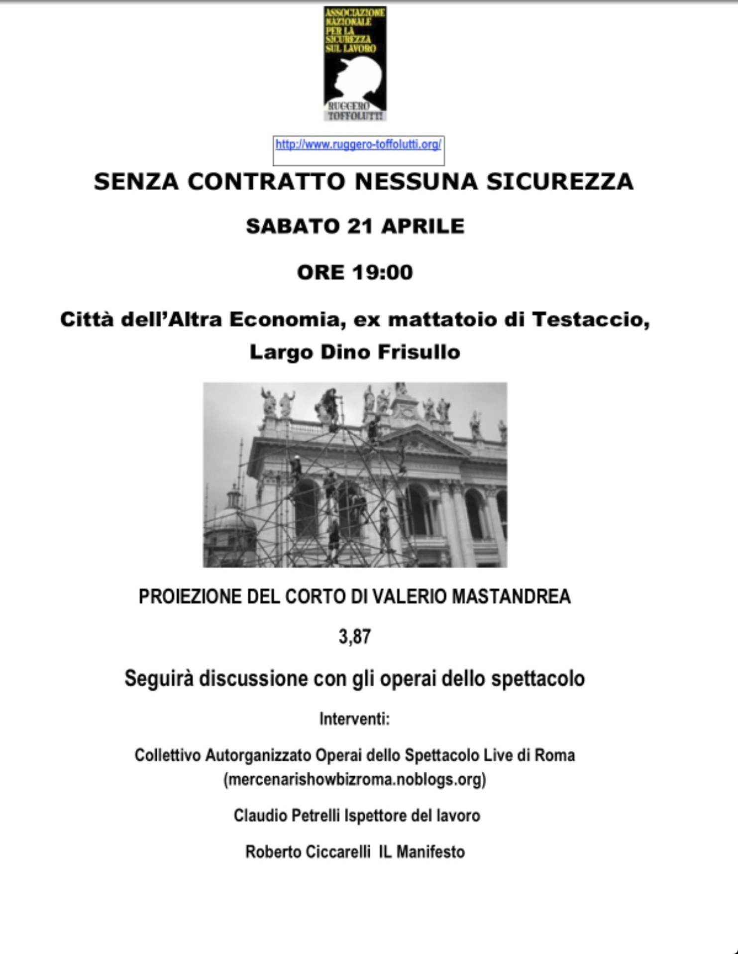 Noi salutiamo Roberto, morto anche lui sul lavoro, il suo.