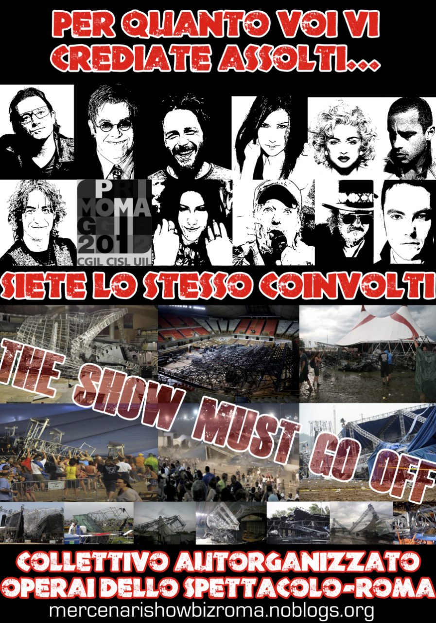 2) Riguardo all'”inaudita violenza” denunciata da Anna Rea della Uil a Città della Scienza: come fatto rilevare anche da qualche testata online “non allineata”, gli scontri sono stati provocati deliberatamente dei vertici dei confederali ben prima degli episodi ripresi in diretta dal TG3, ovvero quando alle 17.30 circa tre compagni del comitato cassintegrati e licenziati Fiat si sono recati in maniera pacifica sotto al palco chiedendo agli organizzatori di intervenire per far luce sulla loro drammatica condizione e sull’imminente scadenza della cassa integrazione in deroga per migliaia di lavoratori della Fiat e dell’indotto. I tre operai licenziati sono stati prima etichettati come facinorosi da chi, come i vertici confederali, non sanno neanche cosa sia il lavoro di fabbrica e la catena di montaggio, e poi sono stati inspiegabilmente consegnati alla Digos che li ha in malo modo cacciati da Città della Scienza. Solo allora – a seguito di una tale provocazione perpetrata contro degli operai nel giorno che dovrebbe dar voce proprio ai lavoratori – i partecipanti alla manifestazione autorganizzata hanno deciso di recarsi in massa a Città della Scienza per rivendicare il sacrosanto diritto di parola per chi sta pagando il costo maggiore della crisi e delle politiche di massacro sociale – rese operative con l’avallo proprio di Cgil, Cisl e Uil. Per giunta mentre molti di noi si recavano nei pressi del concerto, altri compagni sono stati preventivamente fermati e invitati ad allontanarsi da Via Coroglio…come se lì si stesse tenendo un G8 e non un concerto “in nome dei diritti del lavoro”. Questa e non altra è stata la causa scatenante la rabbia materializzatasi sotto al palco quando era già del tutto evidente la volontà di Cgil, Cisl e Uil di sottrarsi a qualsiasi forma di dialogo.3) Dopo i primi momenti di tensione sembrava essere stato raggiunto un accordo secondo il quale un lavoratore dell’Irisbus e un licenziato Fiat avrebbero potuto brevemente prendere la parola durante il concerto e infatti due lavoratori in rappresentanza di queste vertenze insieme ad un portavoce del neonato “Comitato Bonifichiamo Bagnoli” erano stati già condotti oltre le transenne ai piedi del palco. In cambio ci è stato chiesto di arretrare di alcuni metri per facilitare un clima di distensione e come si può verificare anche da numerosi video i circa 200 manifestanti sono effettivamente arretrati creando uno spazio di alcuni metri tra essi e i cordoni delle forze dell’ordine.