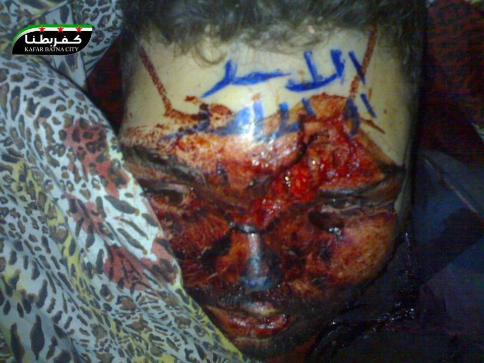 2- The story of Khaled Yahya Zukari. The witness was actually in a car with his brother and their wives and children. They were shot at by government forces and his wife and daughter (Leen) were hit. The baby girl’s head was almost split in half and a bullet penetrated the mother’s chest. The mother became hysterical as a result of the shock. Later she died as the field hospital had to be evacuated prior to an army raid. The Assad army told the people that the FSA raped and killed the woman.