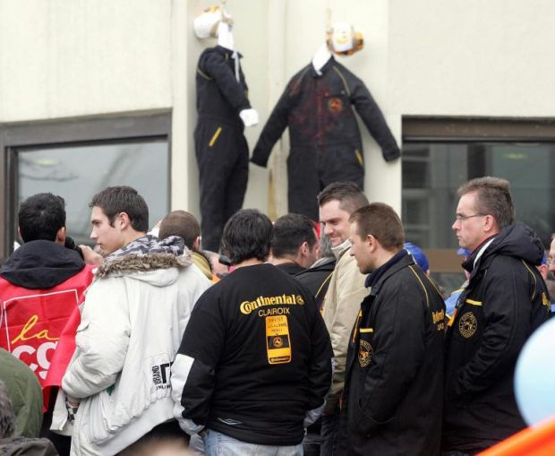 I lavoratori si mobilitano in modo sempre più radicale: dopo aver costretto il “Padrone” a fuggire con un fitto lancio di uova, ieri sono tornati a bloccare i cancelli del complesso industriale impiccando un manichino (saggi ‘sti lavoratori!) e facendo irruzione in una riunione tra sindacati e azienda,