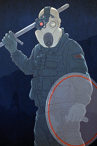 lavoratori con gas lacrimogeni ed altri prodotti chimici che bruciano la pelle al contatto.