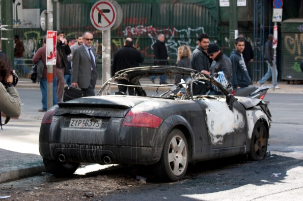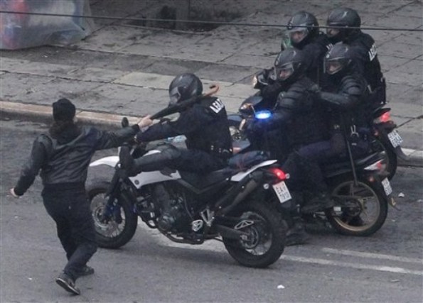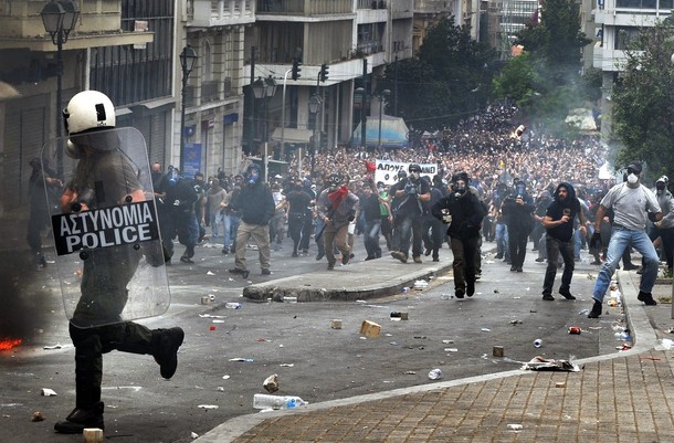 impegnati a far battaglie per “carcerare” i politici, non per “liberare” gli sfruttati). Ad Atene la manifestazione è stata imponente: più di 40.000 persone hanno occupato le strade della città contro le politiche anti-deficit del governo. A Syntagma sono iniziati gli scontri con uno spezzone di circa trecento manifestanti, che hanno attaccato la polizia con pietre e bottiglie molotov, in risposta alle pesanti cariche dei reparti speciali e al fitto lancio di lacrimogeni e spray urticanti.