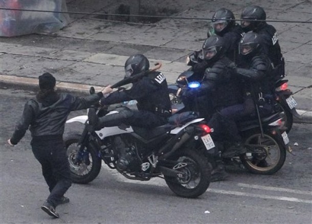 Ancora una volta un paese paralizzato e titoli che parlano di “anarchici”, di giovani facinorosi che fanno a botte con la polizia. In realtà è un paese allo sfascio, è un paese incazzato nero da mesi e mesi … che è arrivato alla crisi totale, alla banca rotta, alla svendita al miglior offerente.
