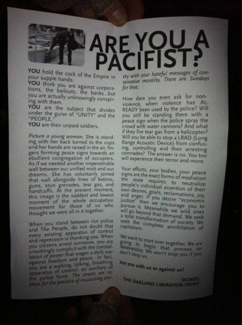 Da Oakland: are you a pacifist? e da che parte stai??
