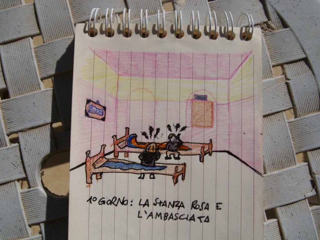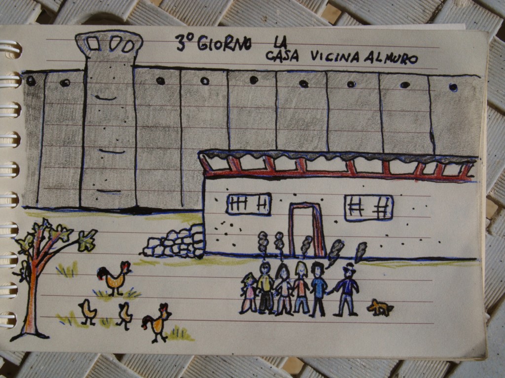 Con una buona dose di incazzatura siamo arrivate nella casa rimasta tagliata fuori dal muro che in quel punto separa la zona di Betlemme da quella di Gerusalemme, tutta la vita degli abitanto di questa casa la famiglia, il lavoro, sono al di là del check point. Questo chech point in 10 gg l’abbiamo passato tantissime volte, mettendoci ore o minuti a discrezione del soldato di guardia. Da una parte si esce a piedi e da una parte in macchina.